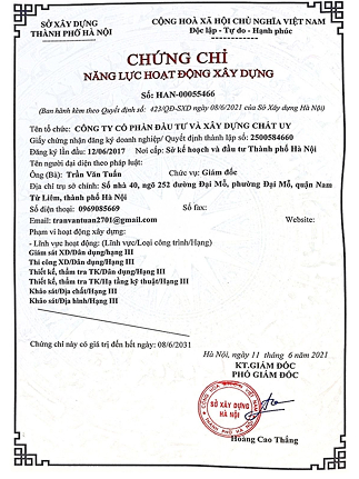Cam kết thi công đúng chất lượng theo tiêu chuẩn kĩ thuật.