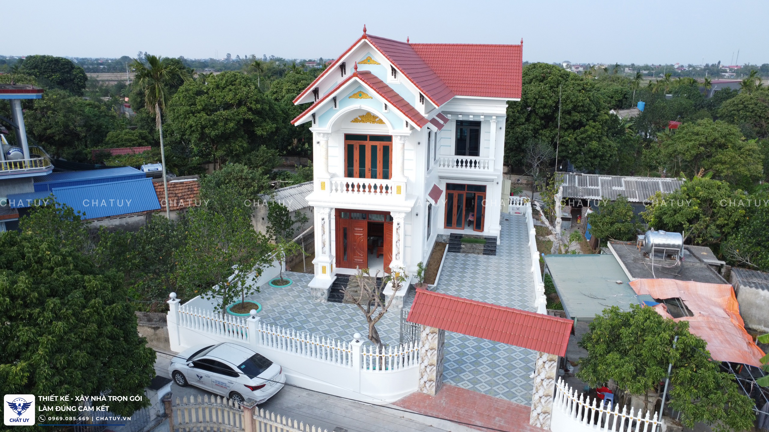 MẪU BIỆT THỰ 2 TẦNG MÁI THÁI DO CHẤT UY THIẾT KẾ CHO NHÀ ANH THÀNH TẠI THÁI BÌNH.