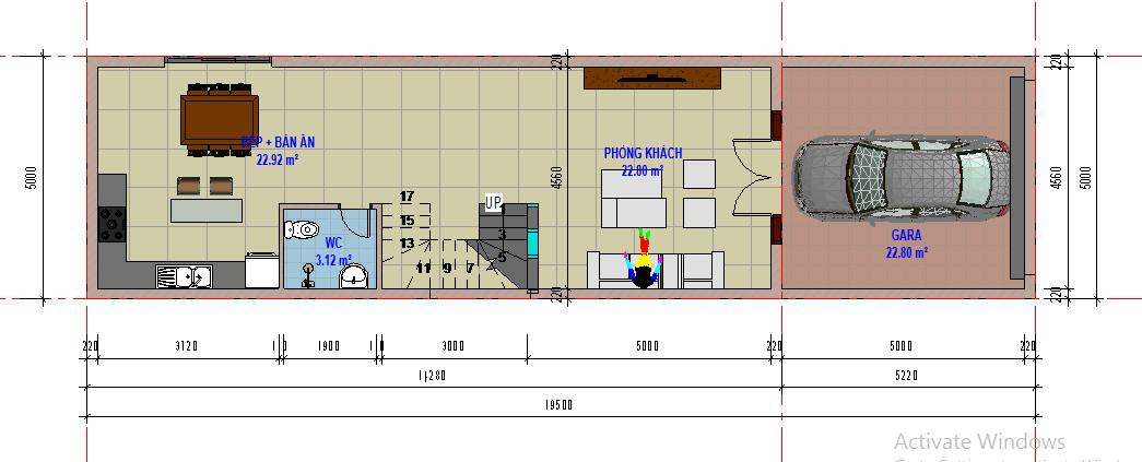 Thiết kế tầng 1 nhà phố qua bản vẽ