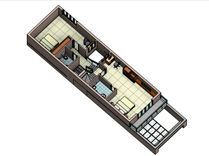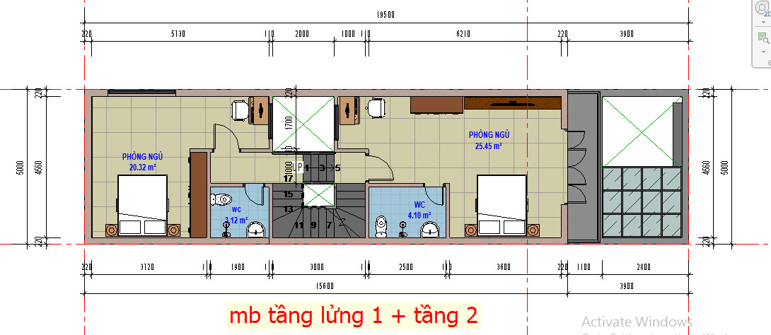 Bản vẽ 3D tầng 2 lửng + tầng 3
