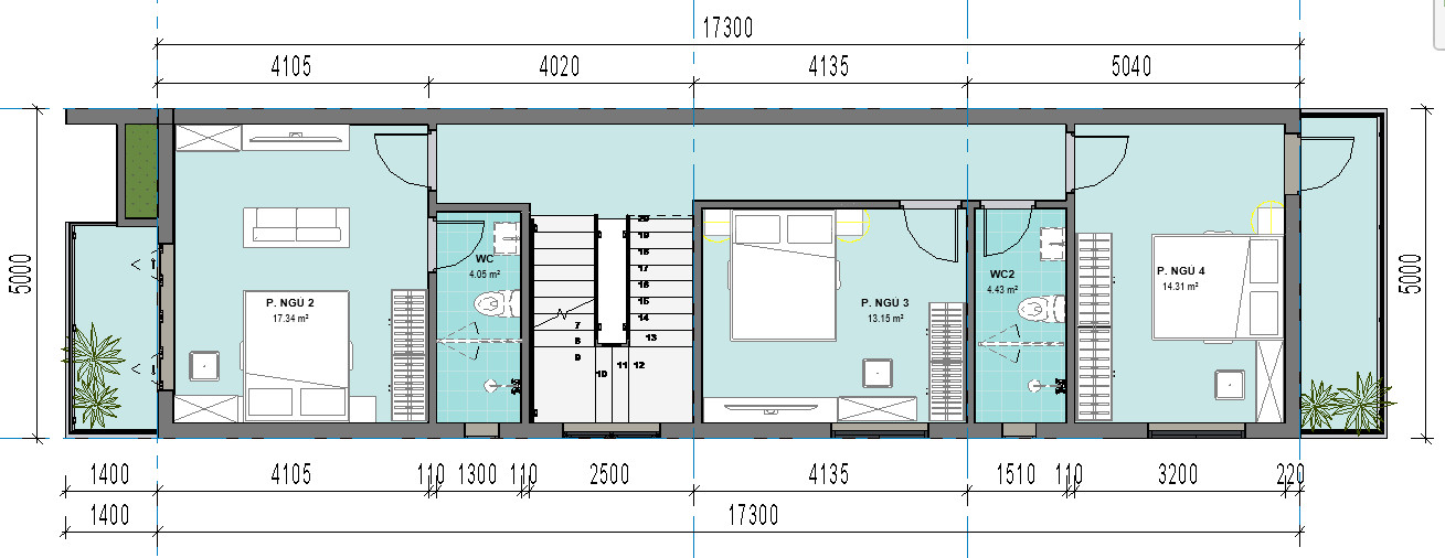Bản vẽ thiết kế tầng 2 của nhà phố