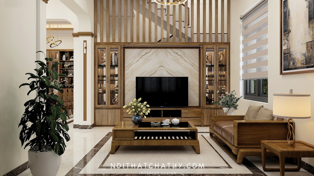 Với diện tích khá rộng rãi nhưng để đảm bảo được sự tối ưu trong toàn bộ không gian cũng như đáp ứng tốt nhất yêu cầu của anh Thiệp, Thiết kế nhà 24h đã lựa chọn gam màu nâu trầm làm điểm nhấn cho toàn bộ thiết kế. Cụ thể từ những chi tiết rèm cửa, sơn tường, bộ bàn ghế cùng những chi tiết liên quan khác. Tất cả đã tạo nên một sức hút vô cùng ấn tượng và độc đáo cũng như vẫn đảm bảo sự tiện lợi về công năng sử dụng và giúp mở rộng không gian sống của cả gia đình.