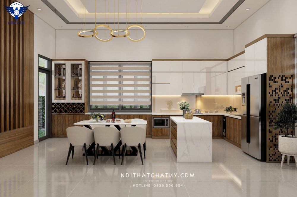 Phòng bếp cũng là một không gian quan trọng không kém khi mà nơi đây là nơi tụ họp, ăn uống, quây quần của mọi thành viên trong gia đình sau một ngày làm việc, học tập mệt mỏi.