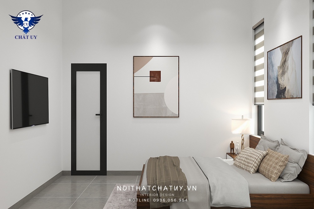 Căn hộ này sở hữu đến 3 căn phòng ngủ với 2 phòng ngủ cá nhân và 1 phòng ngủ master rộng lớn đủ sức chứa cho các thành viên của gia đình. Tuy nhiên, phong cách chung mà lối thiết kế nội thất hướng đến đối với phòng ngủ vẫn là sự tối giản về chi tiết, đơn giản về thiết kế chỉ là những gam màu trắng – xám nhưng nổi bật vẫn là gam màu trắng tạo sự mát mẻ, dễ chịu cho gia chủ.
